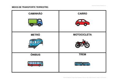 | Nº Visualizações: 1194 Nº Pranchas Relacionadas: 1 Tipo: Word Prancha Dinâmica: NÃO Descrição: Prancha elaborada com símbolos do Portal ARASAAC sobre meios de transporte. A prancha contém 6 símbolos. Prancha para imprimir. Nível: iniciante Autor: Fernanda Garcia Profissão: Aluna de Graduação de Terapia Ocupacional da UFRJ E-mail: fernandiinha05@hotmail.com | |||||||||