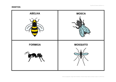 | Nº Visualizações: 1305 Nº Pranchas Relacionadas: 1 Tipo: Word Prancha Dinâmica: NÃO Descrição: Prancha elaborada com símbolos do Portal ARASAAC sobre insetos. Contém 4 imagens. Para imprimir. Nível: iniciante Autor: Fernanda Garcia Profissão: Aluna de Graduação de Terapia Ocupacional da UFRJ E-mail: fernandiinha05@hotmail.com | |||||||||