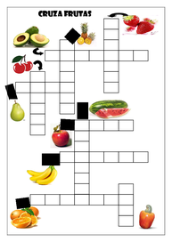 Descrição: Atividade de palavras cruzadas com o tema: Frutas