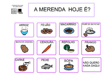 | Nº Visualizações: 1155 Nº Pranchas Relacionadas: 1 Tipo: SDP Prancha Dinâmica: SIM Descrição: Atividade para ser usada no computador ou impressa. O usuário seleciona o que é a merenda do dia. Pode ser utilizada por varredura ou acesso direto. Nível: iniciante Autor: Lindinete Telles Menezes Profissão: Professora de Sala de Recursos Multifuncional E-mail: lindimenezes@hotmail.com | |||||||||