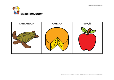 | Nº Visualizações: 913 Nº Pranchas Relacionadas: 1 Tipo: Word Prancha Dinâmica: NÃO Descrição: Prancha de comunicação elaborada com símbolos ARASAAC para seleção de rima com a palavra beijo. Prancha com 3 opções de seleção para imprimir. Nível: iniciante Autor: Luciana Rivillini Ferreira Profissão: Estudante de Terapia Ocupacional UFRJ E-mail: lurivillini@gmail.com | |||||||||