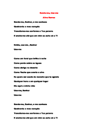 | Nº Visualizações: 1060 Nº Pranchas Relacionadas: 4 Tipo: Word Prancha Dinâmica: SIM Descrição: Caça-palavras feito com a música Sonda-me da cantora Aline Barros. Nível: intermediário Autor: Jessika Kojima Profissão: Estudante de Terapia Ocupacional E-mail: jessikahanako@hotmail.com | |||||||||