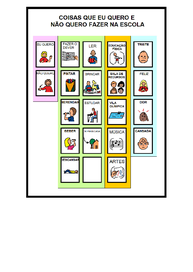 | Nº Visualizações: 4599 Nº Pranchas Relacionadas: 1 Tipo: BoardMaker Prancha Dinâmica: NÃO Descrição: Prancha para ser impressa onde o usuário indica o que ele quer ou não fazer na escola. Nível: iniciante Autor: Valéria Alexandre da Silva Profissão: Professora de Sala de Recursos Multifuncional E-mail: valleriajc@gmail.com | |||||||||