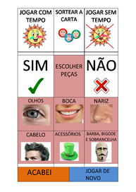 | Nº Visualizações: 2043 Nº Pranchas Relacionadas: 1 Tipo: Word Prancha Dinâmica: NÃO Descrição: Prancha de comunicação para ser utilizada com o jogo Cara Maluca. Atividade para imprimir desenvolvida pelo projeto TO Brincando da UFRJ. Nível: iniciante Autor: Ana Carolina Bernardi de Castro Profissão: Estudante de Terapia Ocupacional E-mail: anacarolina.bcastro@hotmail.com | |||||||||
