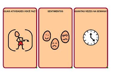 | Nº Visualizações: 1304 Nº Pranchas Relacionadas: 5 Tipo: SDP Prancha Dinâmica: SIM Descrição: Prancha de comunicação com atividades extracurriculares. Nível: intermediário Autor: Marília Lima Pereira Profissão: Aluna de Graduação de Terapia Ocupacional da UFRJ E-mail: lia.lia86@gmail.com | |||||||||