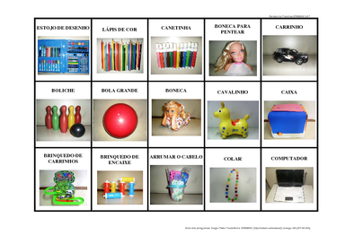 Descrição: Prancha de Comunicação com fotos de brinquedos.