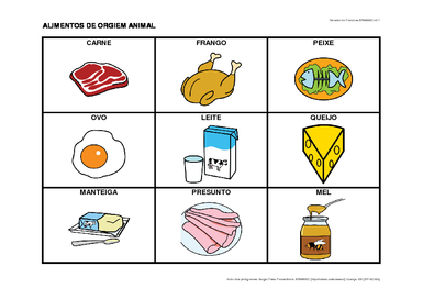 | Nº Visualizações: 1308 Nº Pranchas Relacionadas: 1 Tipo: Word Prancha Dinâmica: NÃO Descrição: Prancha elaborada com material do Portal ARASAAC sobre alguns alimentos que tem origem animal. Contém 9 imagens. Para imprimir. Nível: iniciante Autor: Fernanda Garcia Profissão: Aluna de Graduação de Terapia Ocupacional da UFRJ E-mail: fernandiinha05@hotmail.com | |||||||||