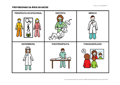 | Nº Visualizações: 1384 Nº Pranchas Relacionadas: 1 Tipo: Word Prancha Dinâmica: NÃO Descrição: Prancha elaborada com material do Portal ARASAAC sobre algumas profissões da área da saúde. Contém 6 imagens. Para imprimir. Nível: iniciante Autor: Fernanda Garcia Profissão: Aluna de Graduação de Terapia Ocupacional da UFRJ E-mail: fernandiinha05@hotmail.com | |||||||||