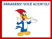 | Nº Visualizações: 1205 Nº Pranchas Relacionadas: 19 Tipo: PowerPoint Prancha Dinâmica: SIM Descrição: Atividade que apresenta o personagem pica-pau e traz perguntas interativas sobre o mesmo no final da apresentação. Nível: intermediário Autor: Jessika Hanako Kojima Profissão: Aluna de Graduação de Terapia Ocupacional da UFRJ E-mail: jessikahanako@hotmail.com | |||||||||