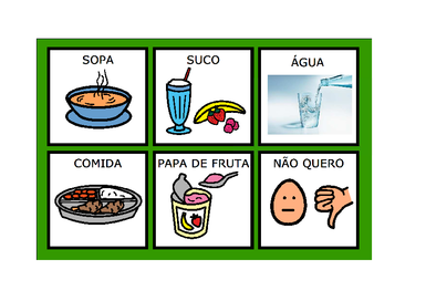| Nº Visualizações: 2060 Nº Pranchas Relacionadas: 1 Tipo: BoardMaker Prancha Dinâmica: NÃO Descrição: Prancha feita no Boardmaker com 6 opções. Poderá ser utilizada em ambiente hospitalar para que o paciente escolha qual alimento gostaria de comer naquele momento. Nível: iniciante Autor: Ana Maria Vicente Profissão: Fonoaudióloga E-mail: anamariavicente@ig.com.br | |||||||||