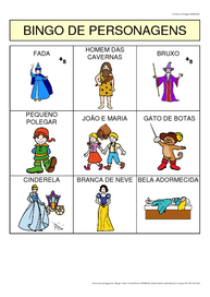 | Nº Visualizações: 2249 Nº Pranchas Relacionadas: 11 Tipo: Word Prancha Dinâmica: NÃO Descrição: Jogo de bingo de personagens de contos de fada. O jogo possui as cartelas e folhas para serem recortadas como peças do bingo. Nível: iniciante Autor: Nayana Rodrigues Profissão: Aluna de Graduação de Fonoaudiologia E-mail: naya_rodrigues@hotmail.com | |||||||||