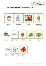 | Nº Visualizações: 1001 Nº Pranchas Relacionadas: 12 Tipo: Word Prancha Dinâmica: NÃO Descrição: Atividade de interpretação de texto com o auxilio de pictogramas. Atividade desenvolvida pelo projeto TOBrincando da UFRJ com os jogos ABC Animado e Primeiras Palavras. Nível: intermediário Autor: TObrincando Profissão: Universidade Federal do Rio de Janeiro E-mail: tobrincandoufrj@gmail.com | |||||||||