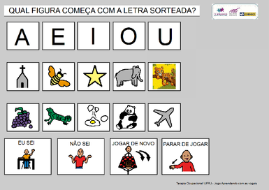 | Nº Visualizações: 1064 Nº Pranchas Relacionadas: 2 Tipo: Word Prancha Dinâmica: NÃO Descrição: Pranchas de Comunicação para o jogo Aprendendo com as vogais. Prancha desenvolvida pelo projeto TO Brincando da UFRJ. Nível: iniciante Autor: Projeto TO Brincando Profissão: Universidade Federal do Rio de Janeiro E-mail: tobrincandoufrj@gmail.com | |||||||||