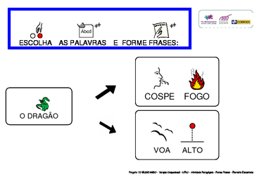 | Nº Visualizações: 984 Nº Pranchas Relacionadas: 21 Tipo: Word Prancha Dinâmica: NÃO Descrição: Atividade pedagógica de formar frases. Atividade desenvolvida pelo projeto TO Brincando da UFRJ. Nível: intermediário Autor: Projeto TO Brincando Profissão: Universidade Federal do Rio de Janeiro E-mail: tobrincandoufrj@gmail.com | |||||||||