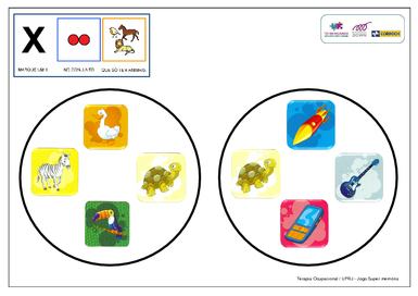 | Nº Visualizações: 845 Nº Pranchas Relacionadas: 6 Tipo: Word Prancha Dinâmica: NÃO Descrição: Atividade de marcar o conjunto indicado pelo enunciado. Atividade desenvolvida pelo projeto TO Brincando da UFRJ para o jogo Super Memória. Nível: iniciante Autor: TObrincando Profissão: Universidade Federal do Rio de Janeiro E-mail: tobrincandoufrj@gmail.com | |||||||||