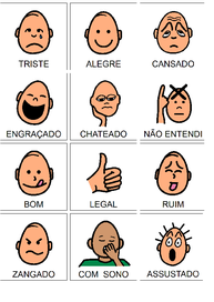 | Nº Visualizações: 1946 Nº Pranchas Relacionadas: 1 Tipo: BoardMaker Prancha Dinâmica: NÃO Descrição: Prancha com 12 opções para ser impressa, com a qual o usuário pode falar como e/ou o que está sentindo. Nível: iniciante Autor: Maria das Graças Oliveira Silva Profissão: Professora de Sala de Recursos Multifuncional E-mail: mgo.silva@gmail.com | |||||||||