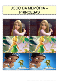 | Nº Visualizações: 795 Nº Pranchas Relacionadas: 4 Tipo: Word Prancha Dinâmica: NÃO Descrição: Nessa atividade temos um jogo da memória com imagens das princesas da Disney. Deve-se recortar e plastificar as peças para jogar. Nível: iniciante Autor: Nayana Rodrigues Profissão: Aluna de Graduação de Fonoaudiologia E-mail: naya_rodrigues@hotmail.com | |||||||||