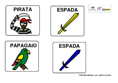 | Nº Visualizações: 878 Nº Pranchas Relacionadas: 2 Tipo: Invento Prancha Dinâmica: NÃO Descrição: Atividade extra de jogo da memória desenvolvida para o jogo Pula Pirata. Atividade desenvolvida pelo projeto TO Brincando da UFRJ. Nível: iniciante Autor: Projeto TO Brincando Profissão: Universidade Federal do Rio de Janeiro E-mail: tobrincandoufrj@gmail.com | |||||||||