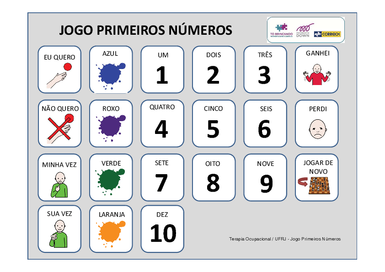 | Nº Visualizações: 919 Nº Pranchas Relacionadas: 1 Tipo: PowerPoint Prancha Dinâmica: NÃO Descrição: Pranchas de comunicação para apoiar o jogo Primeiros Números. Atividade desenvolvida pelo Projeto TOBrincando da UFRJ. Nível: iniciante Autor: TObrincando Profissão: Universidade Federal do Rio de Janeiro E-mail: tobrincandoufrj@gmail.com | |||||||||
