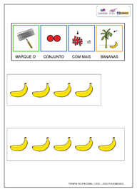 | Nº Visualizações: 994 Nº Pranchas Relacionadas: 6 Tipo: Word Prancha Dinâmica: NÃO Descrição: Atividade de marcar o conjunto que tem mais ou menos bananas de acordo com o enunciado. Atividade desenvolvida pelo projeto TOBrincando da UFRJ a partir do Jogo Pula Macaco. Nível: iniciante Autor: TObrincando Profissão: Universidade Federal do Rio de Janeiro E-mail: tobrincandoufrj@gmail.com | |||||||||