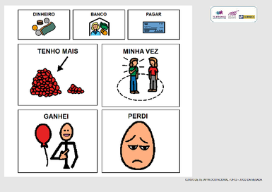 | Nº Visualizações: 1452 Nº Pranchas Relacionadas: 1 Tipo: BoardMaker Prancha Dinâmica: SIM Descrição: Comunicador para apoiar o jogo da Mesada. Atividade desenvolvida pelo Projeto TOBrincando da UFRJ. Nível: iniciante Autor: TObrincando Profissão: Universidade Federal do Rio de Janeiro E-mail: tobrincandoufrj@gmail.com | |||||||||