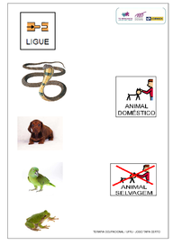 | Nº Visualizações: 1028 Nº Pranchas Relacionadas: 14 Tipo: Word Prancha Dinâmica: NÃO Descrição: Atividade de separar os animais selvagens dos animais domésticos. Atividade desenvolvida pelo projeto TOBrincando da UFRJ para o jogo Tapa Certo. Nível: intermediário Autor: TObrincando Profissão: Universidade Federal do Rio de Janeiro E-mail: tobrincandoufrj@gmail.com | |||||||||