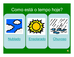 | Nº Visualizações: 2292 Nº Pranchas Relacionadas: 18 Tipo: PowerPoint Prancha Dinâmica: SIM Descrição: Atividade para ser usada no computador ou impressa. Fala sobre como o tempo está e o que as pessoas gostam de fazer dependendo de como ele está. Nível: intermediário Autor: Daniel dos Santos Profissão: Aluno de Graduação de Terapia Ocupacional da UFRJ E-mail: bolsistas.ufrjca@gmail.com | |||||||||