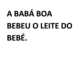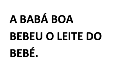 | Nº Visualizações: 1767 Nº Pranchas Relacionadas: 8 Tipo: Word Prancha Dinâmica: NÃO Descrição: Trava-língua com letras ampliadas com o principal objetivo de trabalhar a articulação do fonema B. Nível: iniciante Autor: Nayana Rodrigues Profissão: Aluna de Graduação de Fonoaudiologia E-mail: naya_rodrigues@hotmail.com | |||||||||
