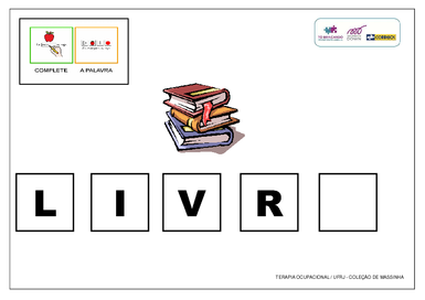 | Nº Visualizações: 1097 Nº Pranchas Relacionadas: 6 Tipo: Word Prancha Dinâmica: NÃO Descrição: Atividade de completar a palavra com as letras que estão faltando. Atividade desenvolvida pelo projeto TOBrincando da UFRJ para o jogo Coleção de Massinha-(Dr. Opera Tudo; Criando com a Turma da Mônica; Brincando na Escola; Bichos e Cabelos) Nível: iniciante Autor: TObrincando Profissão: Universidade Federal do Rio de Janeiro E-mail: tobrincandoufrj@gmail.com | |||||||||
