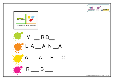 | Nº Visualizações: 956 Nº Pranchas Relacionadas: 6 Tipo: Word Prancha Dinâmica: NÃO Descrição: Atividade de completar a com a letra que está faltando. Atividade desenvolvida pelo projeto TO Brincando da UFRJ para o jogo 12 Potes. Nível: intermediário Autor: TObrincando Profissão: Universidade Federal do Rio de Janeiro E-mail: tobrincandoufrj@gmail.com | |||||||||