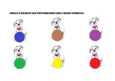 | Nº Visualizações: 850 Nº Pranchas Relacionadas: 2 Tipo: Word Prancha Dinâmica: NÃO Descrição: Nessa atividade, a criança deverá circular o dálmata que estiver brincando com a bolinha da cor pedida no enunciado. Nível: iniciante Autor: Nayana Rodrigues Profissão: Aluna de Graduação de Fonoaudiologia E-mail: naya_rodrigues@hotmail.com | |||||||||