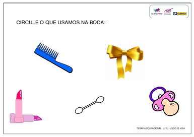 | Nº Visualizações: 940 Nº Pranchas Relacionadas: 6 Tipo: Word Prancha Dinâmica: NÃO Descrição: Atividade de circular os objetos que usamos. Atividade desenvolvida para o jogo Se Vira no projeto TOBrincando da UFRJ. Nível: iniciante Autor: TObrincando Profissão: Universidade Federal do Rio de Janeiro E-mail: tobrincandoufrj@gmail.com | |||||||||