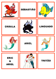 | Nº Visualizações: 1179 Nº Pranchas Relacionadas: 2 Tipo: Word Prancha Dinâmica: NÃO Descrição: Jogo da memória com os personagens do filme A Pequena Sereia. O objetivo é associar o personagem com o nome para formar os pares. A atividade deve ser impressa. Nível: iniciante Autor: Nathalia Pereira Amado Profissão: Estudante de Terapia Ocupacional E-mail: amadonathi@hotmail.com | |||||||||