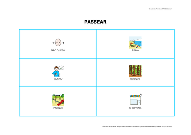 | Nº Visualizações: 932 Nº Pranchas Relacionadas: 1 Tipo: Word Prancha Dinâmica: NÃO Descrição: Prancha de comunição sobre passeio construída com o gerador de pranchas do Portal Arasaac. Nível: iniciante Autor: SUELEN GEMAQUE PINHO Profissão: GRADUANDA DE TERAPIA OCUPACIONAL E-mail: suelengemaque@ufrj.br | |||||||||