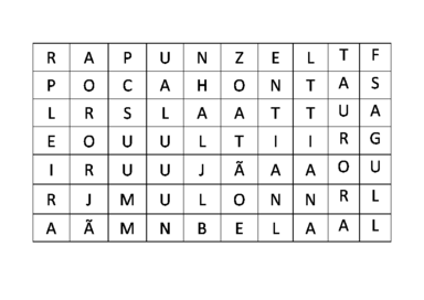 | Nº Visualizações: 1320 Nº Pranchas Relacionadas: 2 Tipo: Word Prancha Dinâmica: NÃO Descrição: Nesse caça palavras temos como respostas nomes das princesas da Disney. Para auxiliar a procura, temos perguntas das quais as respostas são as palavras que devem ser encontradas nas palavras embaralhadas. Nível: iniciante Autor: Nayana Rodrigues Profissão: Aluna de Graduação de Fonoaudiologia E-mail: naya_rodrigues@hotmail.com | |||||||||