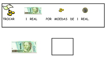 | Nº Visualizações: 904 Nº Pranchas Relacionadas: 10 Tipo: Invento Prancha Dinâmica: NÃO Descrição: Atividade para substituir o valor da cédula por moedas. Atividade desenvolvida pelo Projeto TO BRINCANDO da UFRJ. Nível: iniciante Autor: Projeto TO Brincando Profissão: Universidade Federal do Rio de Janeiro E-mail: tobrincandoufrj@gmail.com | |||||||||