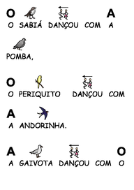 | Nº Visualizações: 835 Nº Pranchas Relacionadas: 2 Tipo: Comunicar com Símbolos Prancha Dinâmica: NÃO Descrição: Atividade desenvolvida com o software Comunicar com Símbolos. História escrita com símbolos de forma simplificada sobre a dança dos bichos. Nível: iniciante Autor: Projeto TO Brincando Profissão: Universidade Federal do Rio de Janeiro E-mail: tobrincandoufrji@gmail.com | |||||||||
