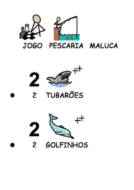 | Nº Visualizações: 662 Nº Pranchas Relacionadas: 12 Tipo: Comunicar com Símbolos Prancha Dinâmica: NÃO Descrição: Atividades escrita com símbolos para auxiliar a brincadeira do jogo Pescaria Maluca, dando opções de quantidades e cores.Material desenvolvido pelo projeto TOBrincando da UFRJ. Nível: iniciante Autor: Projeto TO Brincando Profissão: Universidade Federal do Rio de Janeiro E-mail: tobrincandoufrji@gmail.com | |||||||||