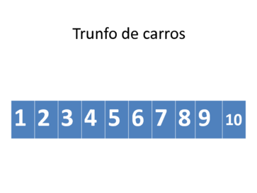 | Nº Visualizações: 1004 Nº Pranchas Relacionadas: 16 Tipo: PowerPoint Prancha Dinâmica: NÃO Descrição: Jogo de trunfo com o tema de carros com letras e números ampliados. Acompanha uma régua numérica para apoiar a brincadeira. Nível: iniciante Autor: Projeto TO Brincando Profissão: Universidade Federal do Rio de Janeiro E-mail: tobrincandoufrj@gmail.com | |||||||||