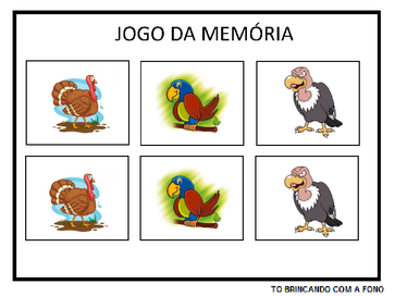 | Nº Visualizações: 1065 Nº Pranchas Relacionadas: 2 Tipo: TOBrincando com a Fono Prancha Dinâmica: NÃO Descrição: Atividade de jogo da memória baseada no livro "O Peru de Peruca" da autora Sônia Junqueira. A criança deve encontrar o par correspondente da figura. Nível: iniciante Autor: Projeto TO Brincando com a Fono Profissão: Universidade Federal do Rio de Janeiro E-mail: tobrincandoufrj@gmail.com | |||||||||
