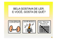 | Nº Visualizações: 1700 Nº Pranchas Relacionadas: 45 Tipo: PowerPoint Prancha Dinâmica: SIM Descrição: História sobre literatura infantil "A Bela a Fera". Ao final da apresentação, o usuário responde a duas perguntas: uma sobre a história contada e outra sobre o que ela gosta de fazer. Nível: intermediário Autor: Márcia Ribeiro de Lima Profissão: Estudante de Terapia Ocupacional - UFRJ E-mail: marciaribeiro.to@ufrj.br | |||||||||