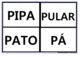 | Nº Visualizações: 864 Nº Pranchas Relacionadas: 7 Tipo: Invento Prancha Dinâmica: NÃO Descrição: Bingo com palavras e figuras iniciadas com a letra P, no qual as crianças devem associá-las. Desenvolvida pelo Projeto TO Brincando. Nível: iniciante Autor: TObrincando Profissão: Universidade Federal do Rio de Janeiro E-mail: tobrincandoufrj@gmail.com | |||||||||