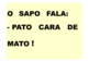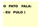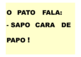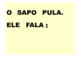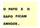 | Nº Visualizações: 3558 Nº Pranchas Relacionadas: 34 Tipo: TOBrincando com a Fono Prancha Dinâmica: NÃO Descrição: Adaptação do livro "O Pato e o Sapo", construída com as imagens da história e o seu texto ampliado. Nível: iniciante Autor: Colaboradores pedagógicos Profissão: Estudante E-mail: colaboradorespedagogicos@gmail.com | |||||||||