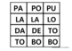 | Nº Visualizações: 1305 Nº Pranchas Relacionadas: 9 Tipo: TOBrincando com a Fono Prancha Dinâmica: NÃO Descrição: Atividade de completar sílabas para formar palavras relacionadas às figuras. Atividade desenvolvida pelo projeto TO Brincando. Nível: intermediário Autor: Projeto TO Brincando Profissão: Universidade Federal do Rio de Janeiro E-mail: tobrincandoufrj@gmail.com | |||||||||