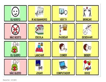 | Nº Visualizações: 781 Nº Pranchas Relacionadas: 1 Tipo: Prancha Fácil Prancha Dinâmica: SIM Descrição: Prancha de Comunicação com poucos elementos, para uma comunicação mais direta. Prancha criada no Software Prancha Fácil. Nível: iniciante Autor: LabAssistiva - UFRJ Profissão: Laboratório de Tecnologia Assistiva do Departamento de Terapia Ocupacional da UFRJ E-mail: labassistivaufrj@gmail.com | |||||||||