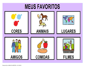 | Nº Visualizações: 823 Nº Pranchas Relacionadas: 6 Tipo: Prancha Fácil Prancha Dinâmica: SIM Descrição: Prancha de Comunicação que pode ser editada e que tem por finalidade comunicar as cores, lugares, animais, dentre outros, que a pessoa tem por preferencia. Nível: iniciante Autor: LabAssistiva - UFRJ Profissão: Laboratório de Tecnologia Assistiva do Departamento de Terapia Ocupacional da UFRJ E-mail: labassistivaufrj@gmail.com | |||||||||