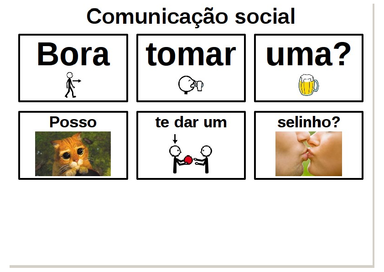 | Nº Visualizações: 2036 Nº Pranchas Relacionadas: 1 Tipo: Prancha Fácil Prancha Dinâmica: NÃO Descrição: Prancha de comunicação com gírias para os usuários mais jovens. Nível: iniciante Autor: Marcilio Miranda Profissão: Estudante E-mail: marcmira@gmail.com | |||||||||