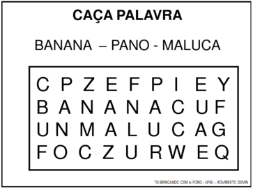 | Nº Visualizações: 560 Nº Pranchas Relacionadas: 3 Tipo: PowerPoint Prancha Dinâmica: NÃO Descrição: Caça Palavras baseado no livro o Macaco e a Mola. Auxiliar o processo de aquisição de leitura e escrita através da estimulação de consciência fonológica. O mediador pede para a criança marcar a letra que falta para formar a palavra. Nível: intermediário Autor: TObrincando Profissão: Universidade Federal do Rio de Janeiro E-mail: tobrincandoufrj@gmail.com | |||||||||