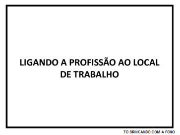 | Nº Visualizações: 787 Nº Pranchas Relacionadas: 7 Tipo: TOBrincando com a Fono Prancha Dinâmica: NÃO Descrição: Atividade para ligar a profissão, com apoio visual, ao local de trabalho. Nível: iniciante Autor: Projeto TO Brincando com a Fono Profissão: Universidade Federal do Rio de Janeiro E-mail: tobrincandoufrj@gmail.com | |||||||||