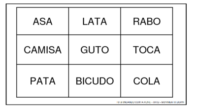 | Nº Visualizações: 546 Nº Pranchas Relacionadas: 13 Tipo: PowerPoint Prancha Dinâmica: NÃO Descrição: Atividade de bingo baseado no livro O Galo Maluco. Nível: intermediário Autor: Projeto TO Brincando com a Fono Profissão: Universidade Federal do Rio de Janeiro E-mail: tobrincandoufrj@gmail.com | |||||||||